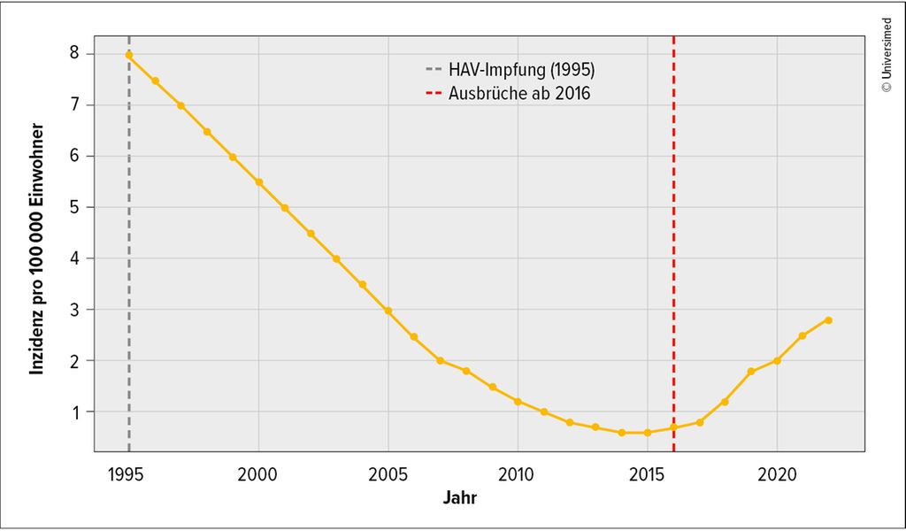Abb. 1: Verlauf der Hepatitis-A-Inzidenz in den USA (1995–2022)