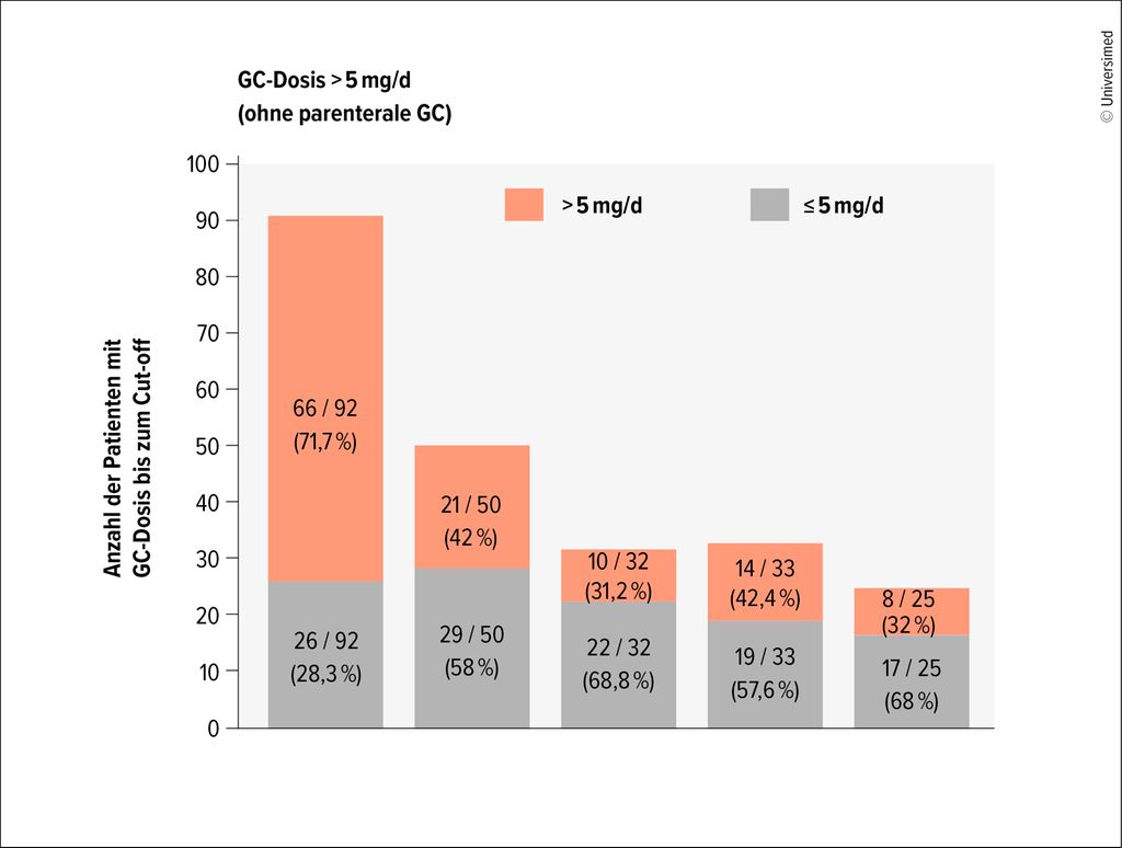 Abb. 1: Entwicklung der hohen GC-Dosierung (>5mg/d) vom Studienbeginn bis zum Ende nach vier Jahren (modifiziert nach Wallner M et al. 2025)3
