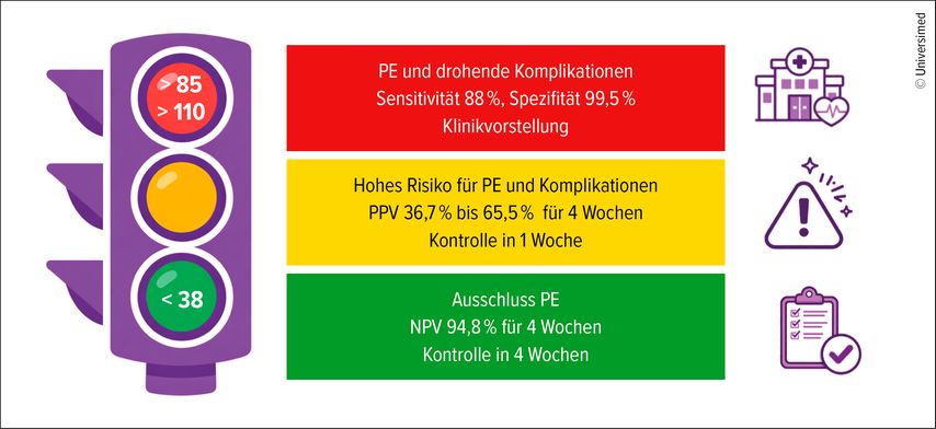 Eine ambulante Betreuung ist bei isolierter Hypertonie oder fetaler Wachstumsrestriktion möglich; bei manifester Präeklampsie oder Symptomverschlechterung ist jedoch eine umgehende Klinikvorstellung nötig.7 Ein sFlt-1/PlGF-Quotient 38 schliesst das Auftreten einer Präeklampsie mit hoher Sicherheit aus.20,21