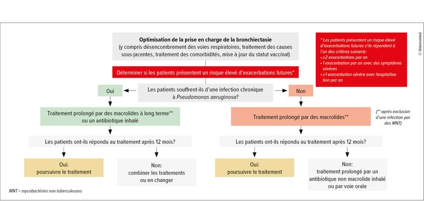 Fig.1: Algorithme de l’ERS pour l’antibiothérapie prolongée chez les patients souffrant de bronchectasie (modifiée selon Chalmers JD et al. 2025)1