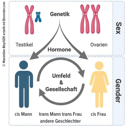 Die Gendermedizin befasst sich mit dem biologischen (englisch «sex») und dem soziokulturellen Geschlecht (englisch «gender») , die oft schwer voneinander zu trennen sind und sich gegenseitig beeinflussen (Abb.1). Für die Medizin ist es entscheidend, beide Aspekte zu berücksichtigen, da sie die Entstehung, Wahrnehmung und Behandlung von Erkrankungen wesentlich prägen.
