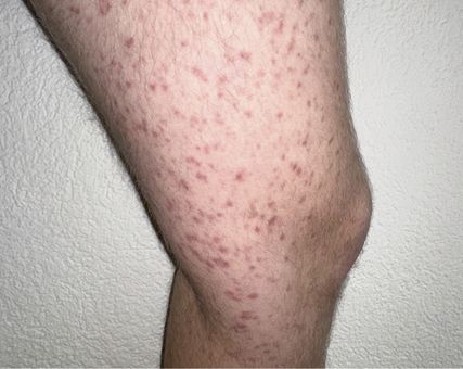 Fig.1: Mastocytose cutanée ou systémique en cas de lésions cutanées typiques avec infiltrats mastocytaires? Avec l’aimable autorisation.