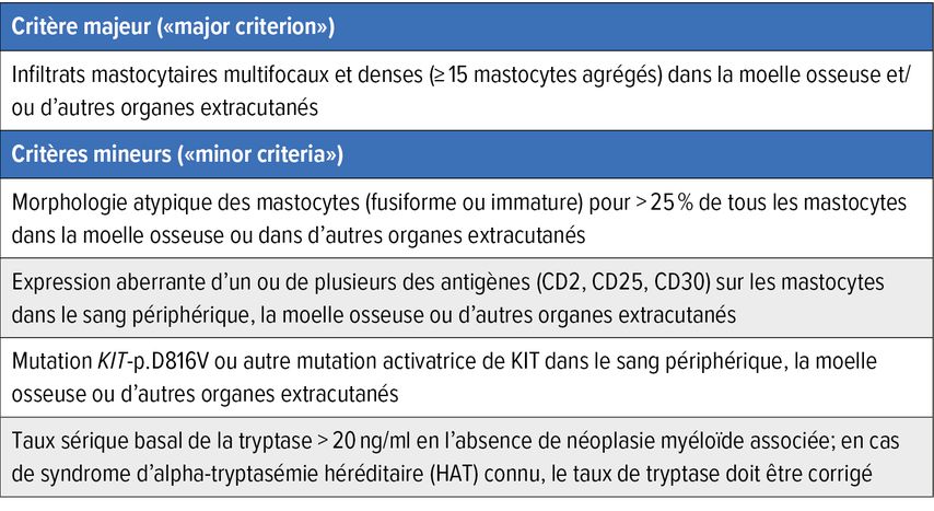 Critères diagnostiques de la mastocytose systémique