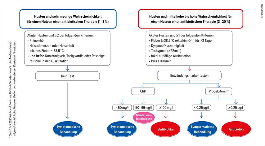 Für die Entscheidung, ob Antibiotika verordnet werden sollen, werden das CRP oder das Procalcitonin empfohlen.