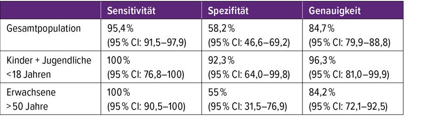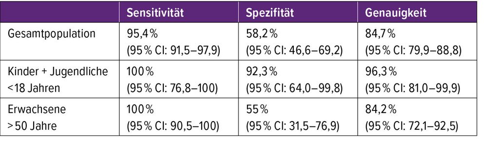 Tab. 1: Sensitivität, Spezifität und Genauigkeit der McDonald-Kriterien 2024 (britische Validierung in klinischem Setting) (mod. nach Brownlee W et al.)5