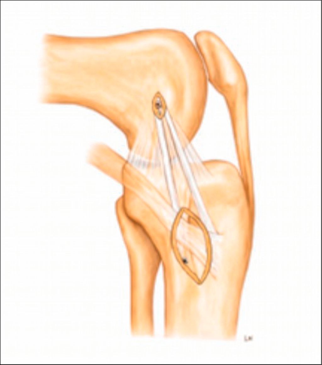 Im Folgenden werden nun die beiden Rekonstruktionstechniken zur operativen Therapie der symptomatischen AMRI dargestellt. Wie bereits erwähnt, sollte insbesondere bei chronischer Instabilität oder in Revisionsfällen eine Beurteilung der Beinachse mittels Ganzbeinstandaufnahme erfolgen, da bei knöcherner Valgusfehlstellung eine achskorrigierende Osteotomie vor einer Bandrekonstruktion in Betracht gezogen werden sollte.