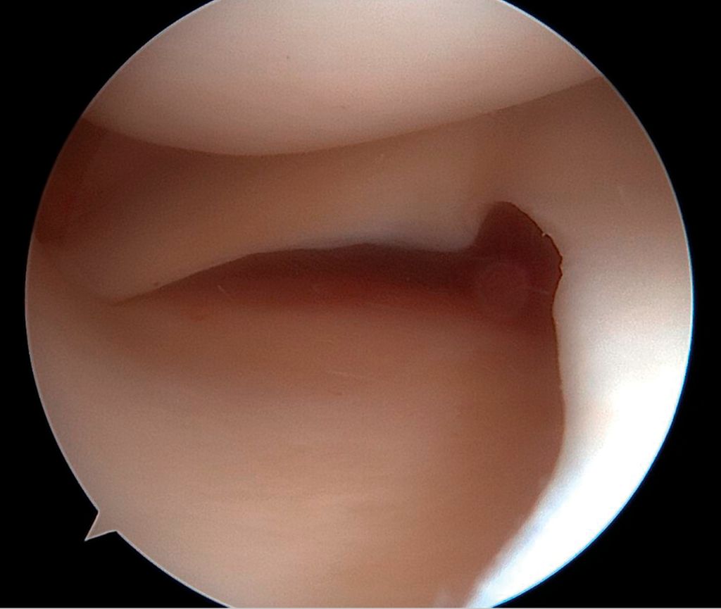 In einer Level-I-Studie an Patient:innen mit kombinierten VKB- und Grad-II-MCL-Verletzungen (nach Fetto und Marshall) und „Floating-Meniskus-Zeichen“ zeigte die Patientengruppe nach MCL-Augmentation mittels gestielter autologer Gracilis-Sehne signifikant weniger VKB-Revisionen, eine geringere residuale MCL-Laxität sowie bessere patient:innenberichtete Outcome-Scores nach 24 Monaten im Vergleich zu Patient:innen mit isolierter VKB-Rekonstruktion und konservativ behandeltem MCL. Die Abbildung 1 zeigt das „Floating-Meniskus-Zeichen“, ein arthroskopisches Zeichen der medialen Instabilität, bei dem sich der mediale Meniskus vom tibialen Plateau abhebt, infolge einer meniskotibialen Läsion des tiefen Innenbandes. Aufgrund einer zusätzlichen Läsion des oberflächlichen Längsbandes kommt es zu einer medialen Gelenköffnung, die als „medial drive-through sign“ bezeichnet wird.