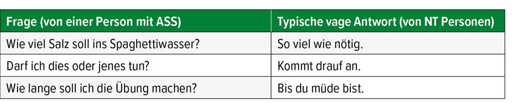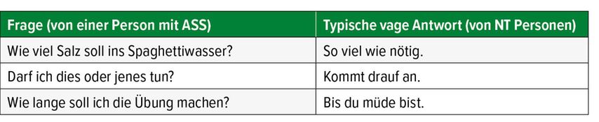 Neurotypische Sprecher:innen verwenden häufig metaphorische und vage Formulierungen, die auf Menschen im Autismus-Spektrum irritierend oder unverständlich wirken können (Tab. 1).