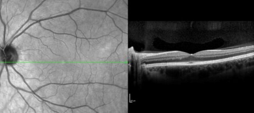 Abb. 1: Retinale OCT-Aufnahme einer MS-Patientin mit diskreter retinaler Atrophie (Bild: Gabriel Bsteh)